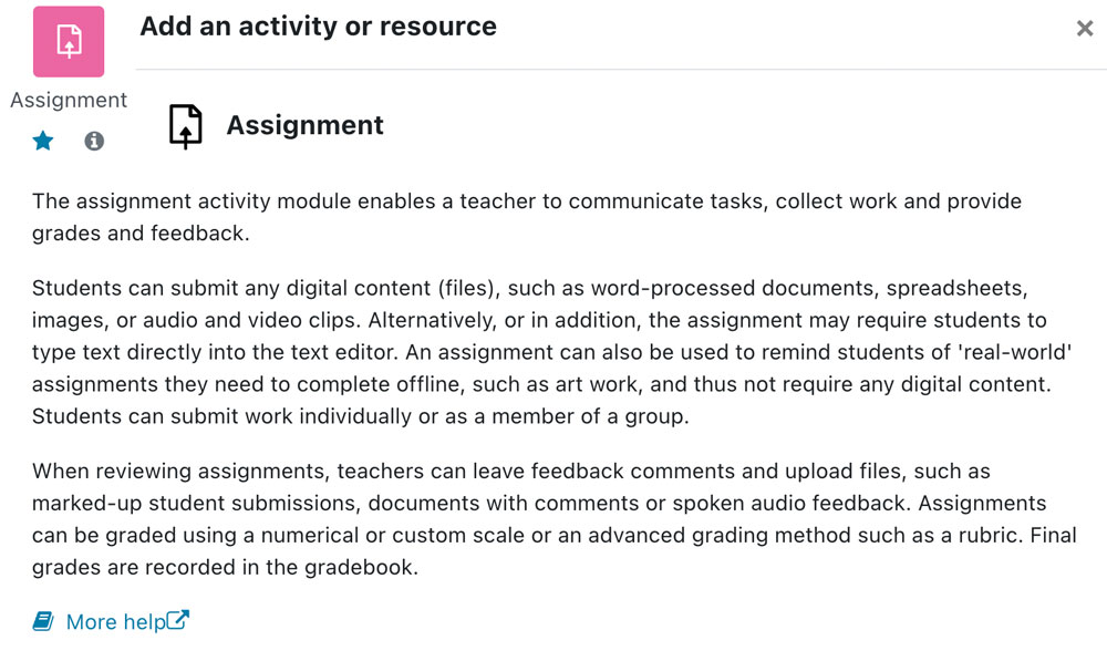 Each activity and resource in Moodle has a name which indicates a possible use and each one has a description which contains some ideas for use. But if you really want to delve into what is possible, take a look at the settings each activity and resource has available. The settings tell you what is possible on a technical level, then add your imagination and creativity to expose the true possibilities. All you need to do is go into the tool’s settings, click on Expand all and start really looking at what is on offer.